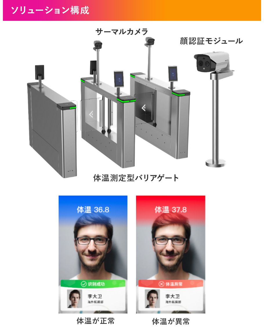 サーマルカメラ+顔認証モジュール+ バリアゲート